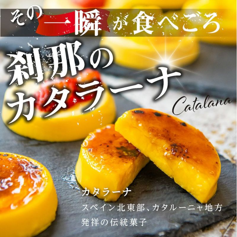 スペイン伝統のカタラーナをイタリア風に冷凍し、とろけるアイスクリームのようなひんやり感とパリパリのカスタードブリュレの新食感スイーツ。