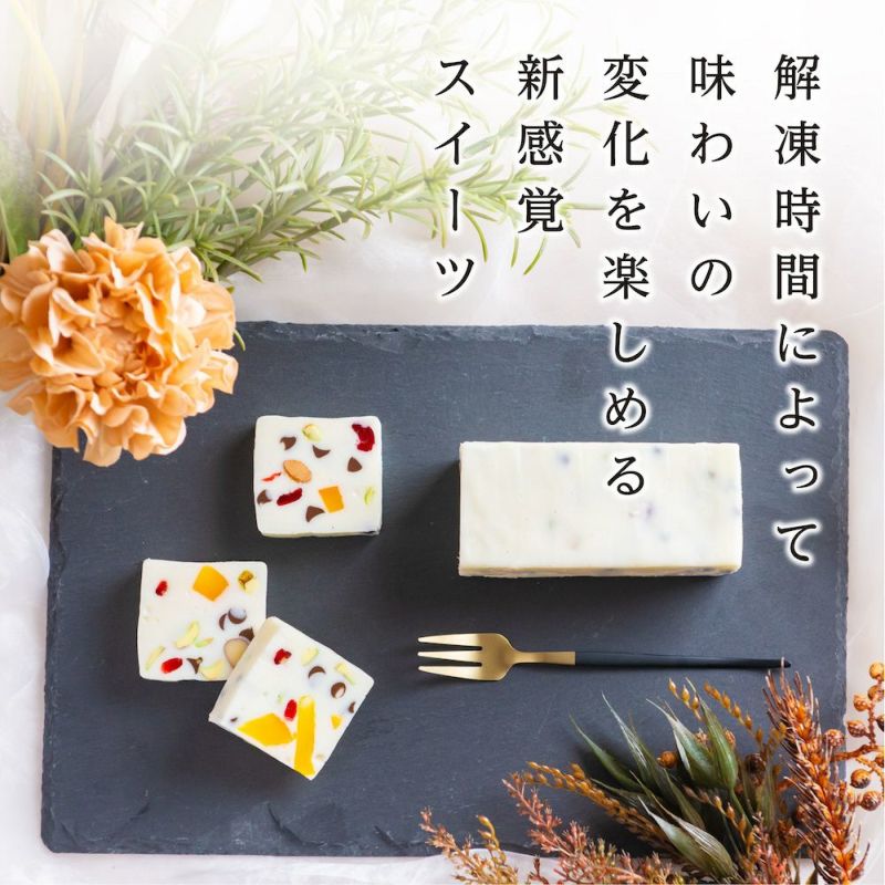 ドライフルーツとナッツを贅沢にミックスしたシチリア伝統的なアイスチーズケーキ。解凍時間によって味わいの変化を楽しめる新感覚スイーツです。