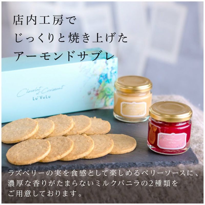 焙煎した薄力粉を使用し、じっくりと店内工房で焼き上げたアーモンドサブレに、自家製のクリームをディップして楽しむ体験型スイーツ。ラズベリーの実を食感として楽しめるベリーソースに、濃厚な香りがたまらないミルクバニラの2種類をご用意しております。