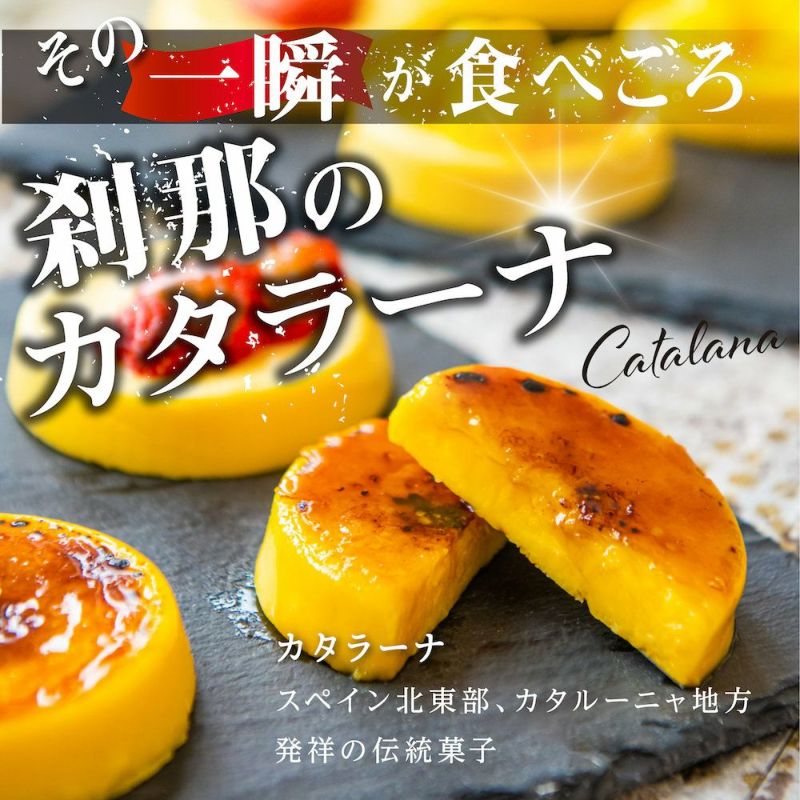スペイン伝統のカタラーナをイタリア風に冷凍し、とろけるアイスクリームのようなひんやり感とパリパリのカスタードブリュレの新食感スイーツ。