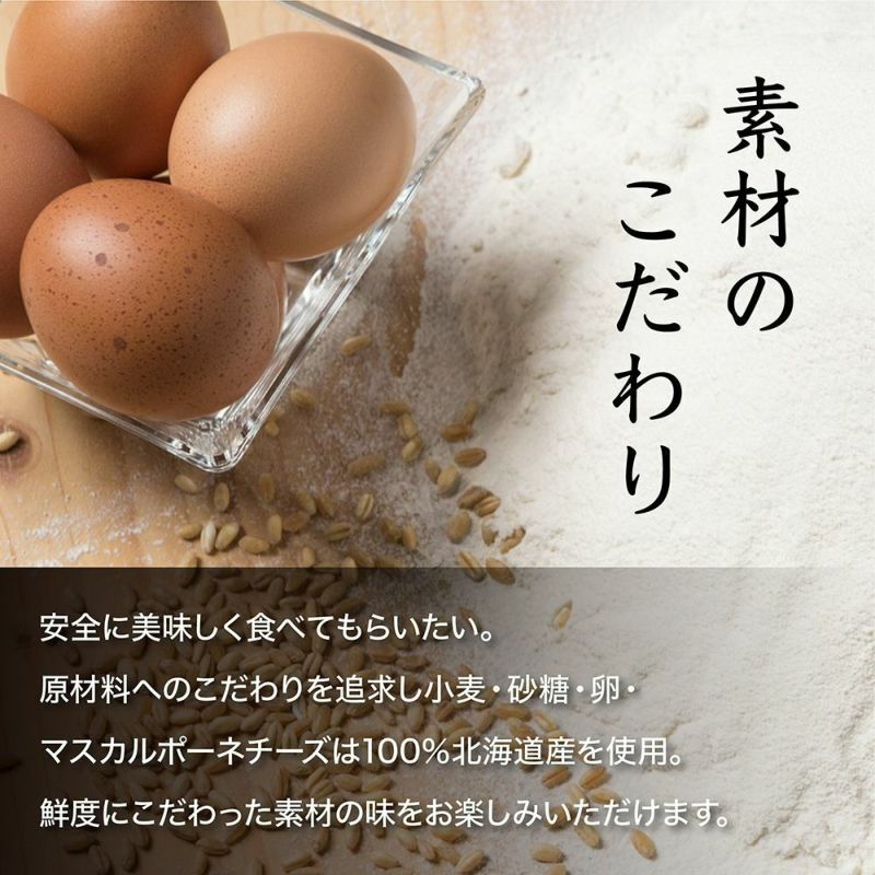 安全に美味しく食べてもらいたい。原材料へのこだわりを追求し、小麦・砂糖・卵・マスカルポーネチーズは100%北海道産を使用。